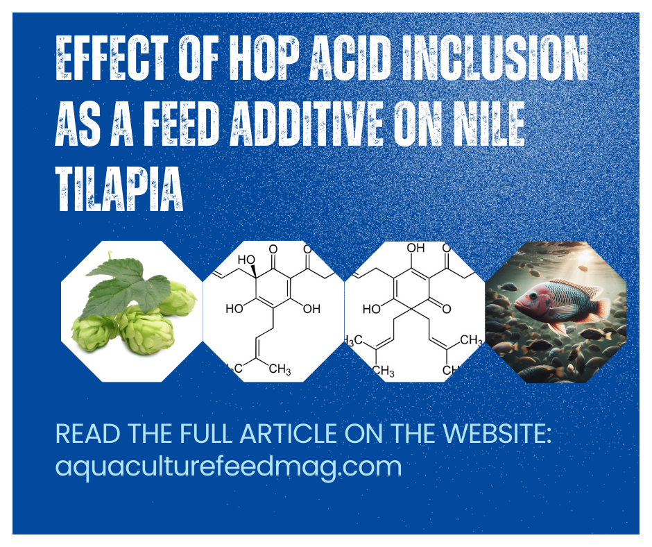 Source : Lee, J. K., Farzad, R., Lee, T., Ying Chuah, S. X., Omidvar, R., Sims, C., Zhang, B., Ropicki, A., & MacIntosh, A. J. (2025). Effect of hop acid inclusion as a feed additive on Nile tilapia, Oreochromis niloticus, production, lysozyme activity, fillet color, and aroma. Journal of the World Aquaculture Society, 56(2), e70014. https://doi.org/10.1111/jwas.70014.