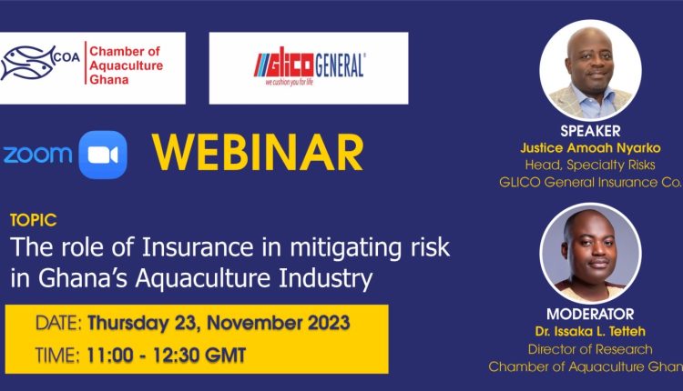 Chère partie prenante, La Chambre de l’Aquaculture du Ghana et Glico General Insurance ont le plaisir de vous inviter à vous inscrire à notre prochain webinaire Zoom sur l’assurance de l’aquaculture.
