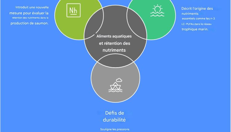 Les aliments aquatiques, principalement les poissons, les mollusques et les crustacés, ont toujours été essentiels à la sécurité alimentaire et à la nutrition mondiales. Ils sont la principale source d’acides gras polyinsaturés n-3 à longue chaîne, essentiels à la santé cérébrale et cardiovasculaire. Le phytoplancton marin synthétise ces acides gras, qui s’accumulent dans le réseau trophique marin, faisant des petits poissons gras comme les anchois et les sardines de riches sources pour la consommation humaine. Les poissons d’élevage, comme le saumon, peuvent également fournir ces nutriments s’ils sont nourris de manière appropriée. Cependant, il existe un débat concernant l’efficacité de l’utilisation d’ingrédients marins (IM) dans les aliments aquacoles, en particulier lorsque ces ingrédients proviennent d’espèces qui pourraient être consommées directement par les humains. Des études suggèrent que la rétention des nutriments est plus efficace lorsque les ressources marines sont consommées directement, mais une transformation est nécessaire pour utiliser les parties non comestibles du poisson.