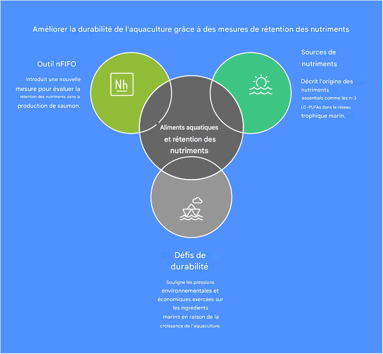 Les implications du ratio nFIFO en aquaculture soulignent son rôle dans l’amélioration de la rétention des nutriments, en particulier pour les acides gras polyinsaturés à longue chaîne oméga-3 (AGPI-LC). En déplaçant l’attention de la biomasse vers les flux de nutriments, le ratio nFIFO fournit un cadre complet pour évaluer la durabilité de l’aquaculture. En outre, le document discute de l’importance de l’utilisation des sous-produits de transformation dans les aliments pour poissons, ce qui peut conduire à une réduction des déchets et à une meilleure rétention des nutriments, soutenant en fin de compte la durabilité des stocks de poissons sauvages.